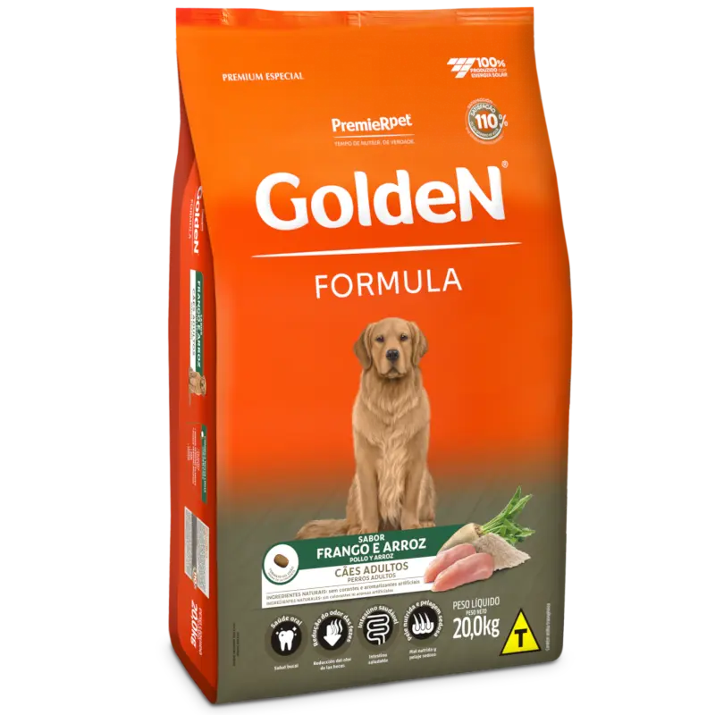 GoldeN Formula Perros Adultos Pollo y Arroz fue el primer alimento Premium Especial fabricado en Brasil.