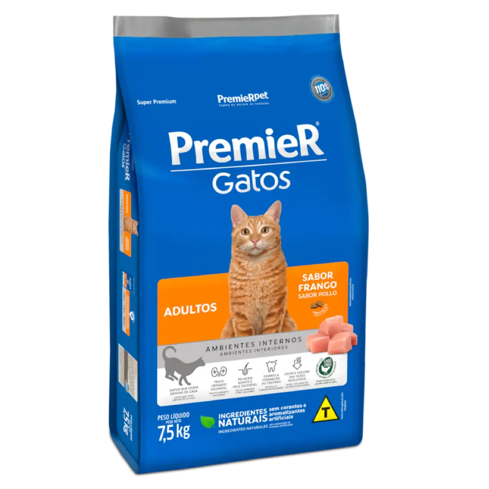 Premier Gatos Adultos ofrece a su gato adulto una comida especial todos los días. Además de un sabor insuperable, proporciona una combinación única de ingredientes nobles que hacen que el pelaje sea mucho más hermoso y brillante.